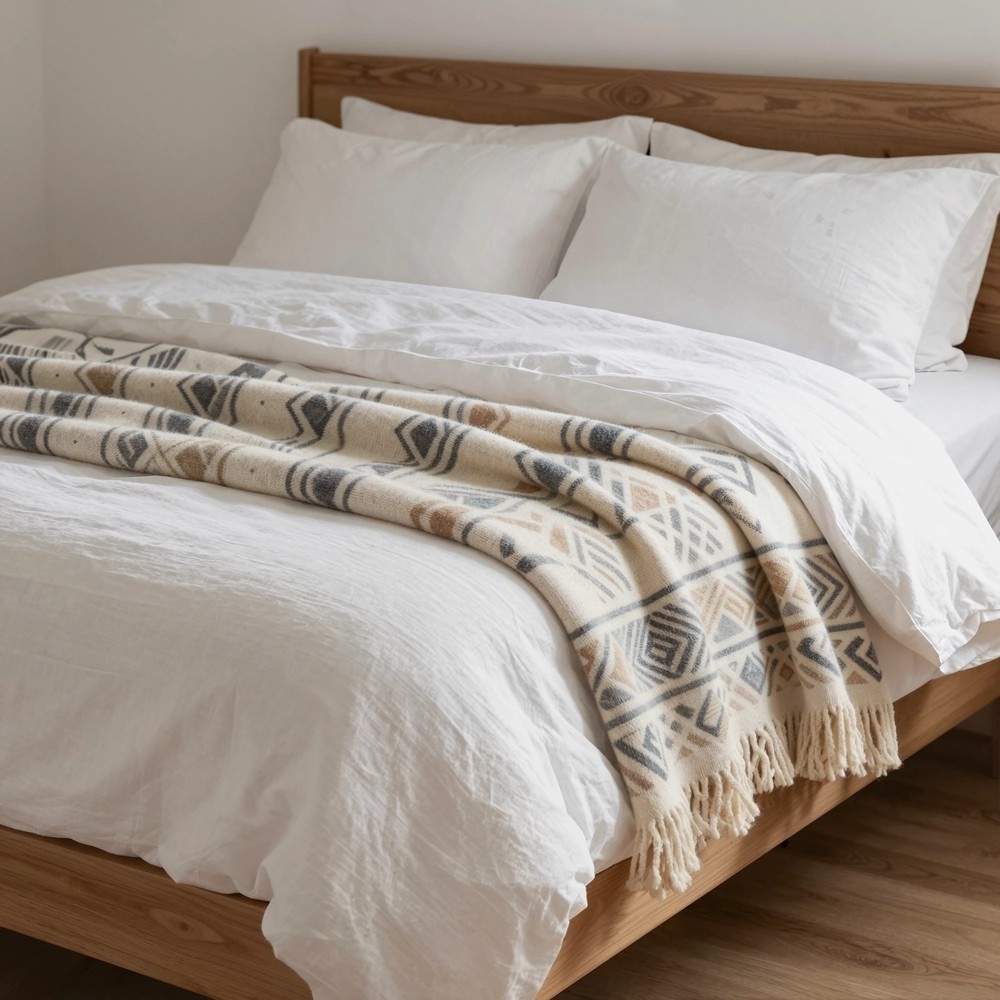 Пледы из Уэльса с их геометрическими узорами и плотной фактурой вдруг стали must-have. Они не только греют, но и задают ритм комнате. Их можно накинуть на диван, использовать как покрывало на кровать или даже повесить на стену как панно.