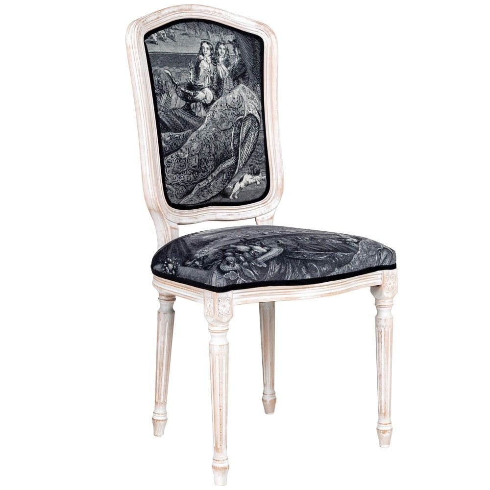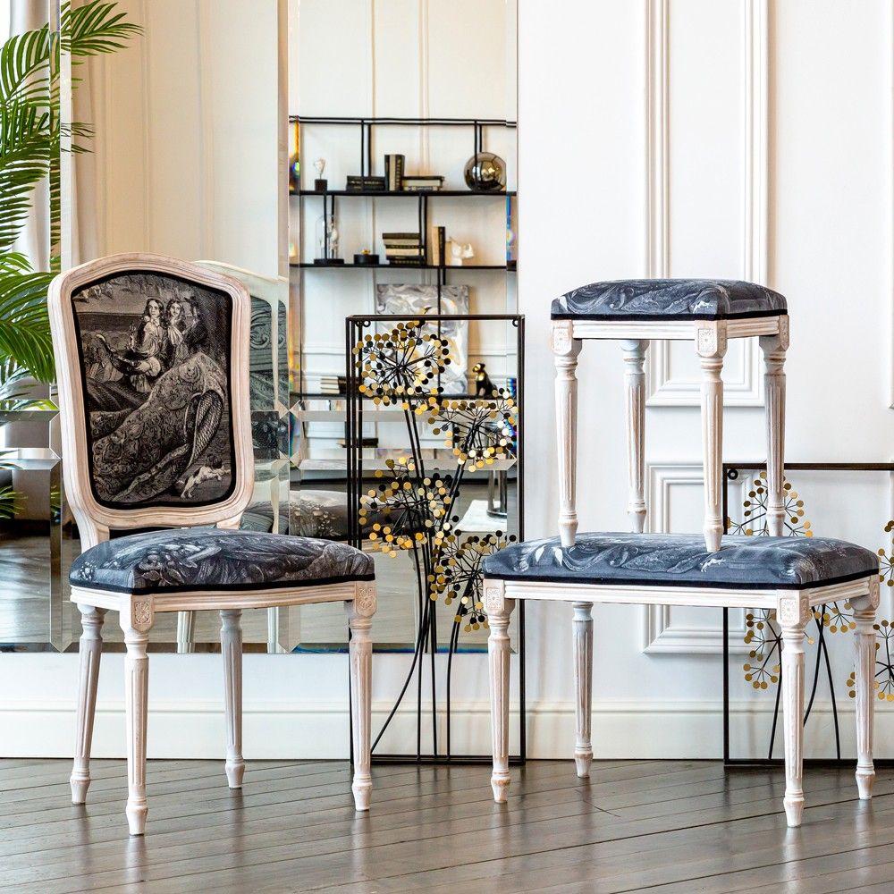 Прямой наследник дворцовых традиций: Созданный как часть лимитированной коллекции «Дворцовый гороскоп», этот стул несёт в себе код главного дворца Франции. Его дизайн вдохновлён гравюрой «Январь», передающей атмосферу королевского оперного зала Лувра, а оборотная сторона спинки отмечена знаком зодиака Водолей. Это превращает предмет из утилитарного в символический, делая его личным талисманом с историей.