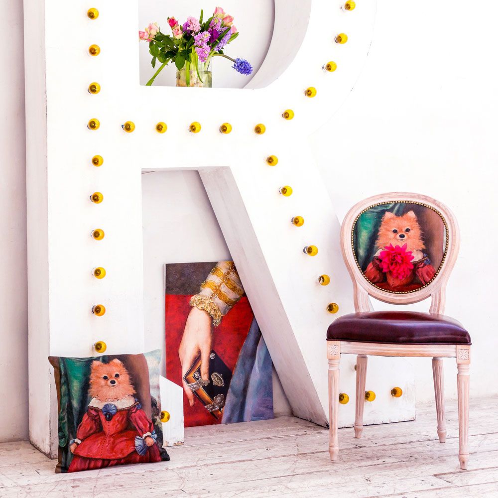 Коллекционную компанию стулу составит галерея декоративных подушек и репродукций с портретами героев этого интерьерного сериала.