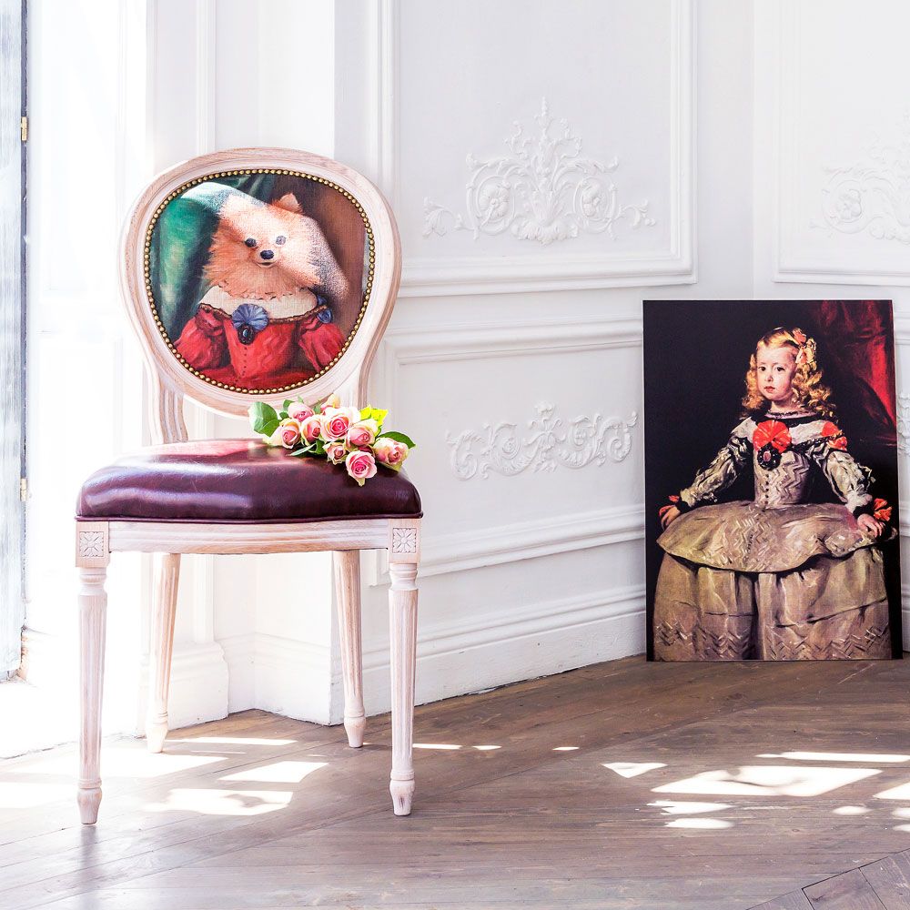 Дизайн "Музейный экспонат" создан эффектом экстравагантных контрастных сочетаний. Глянцевое шоколадное сиденье объединилось с шелковистой льняной спинкой, а королевский силуэт эпохи Луи-Филиппа - с рисунком в жанре современного анимализма, подражающего ярким придворным полотнам эпохи Возрождения.
