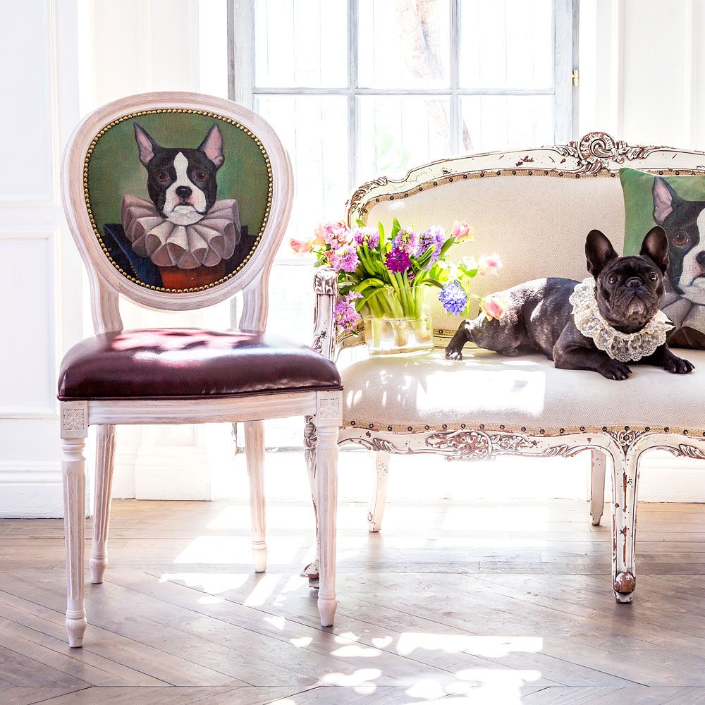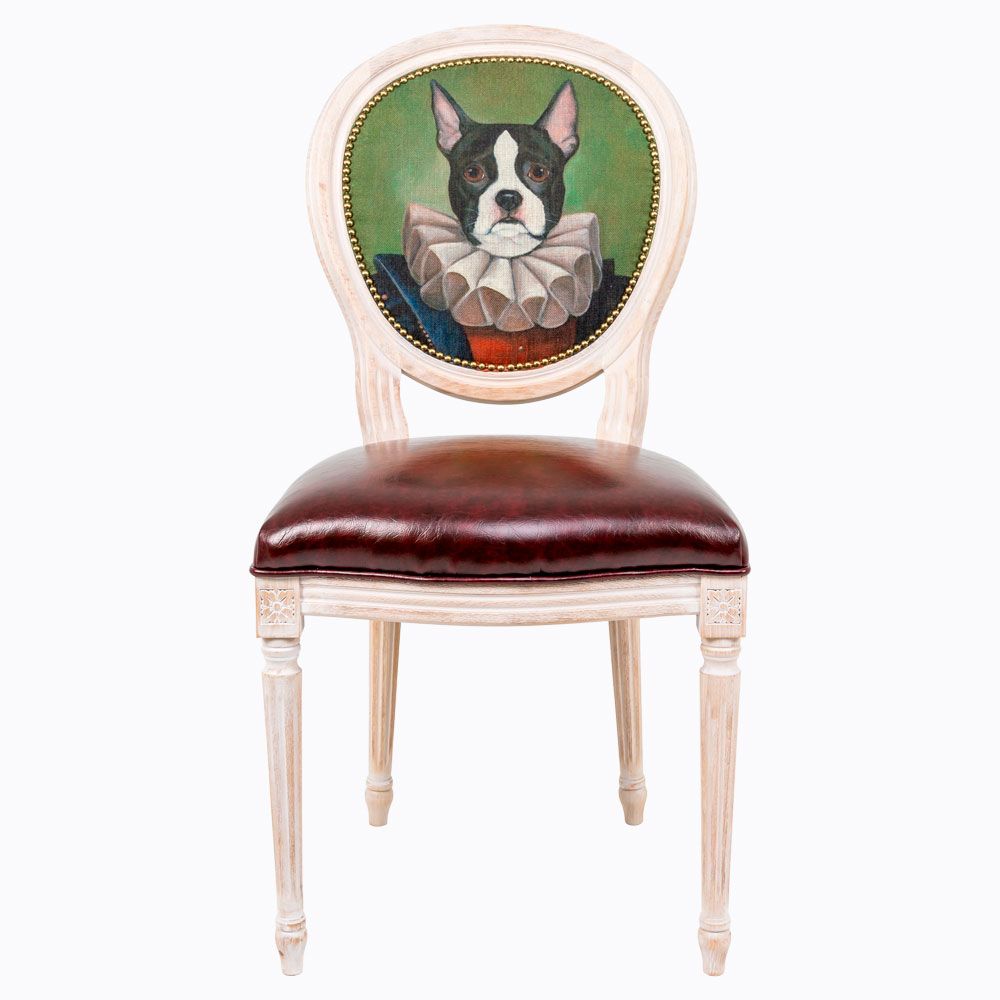 Дизайн "Музейный экспонат" создан эффектом экстравагантных контрастных сочетаний. Шоколадный глянец сиденья объединился с шелковистой льняной спинкой, а королевский силуэт эпохи Луи-Филиппа - с рисунком современного анимализма, находчиво подражающим придворным сюжетам эпохи Возрождения. Помимо авангардного дизайна, стул наделен прочностью и долговечностью, комфортом и экологичностью, присущей мебели из натурального бука. По эксклюзивному дизайну "byObject" корпусы стульев серии "Музейный экспонат" выточены, брашированы и патинированы в Италии.