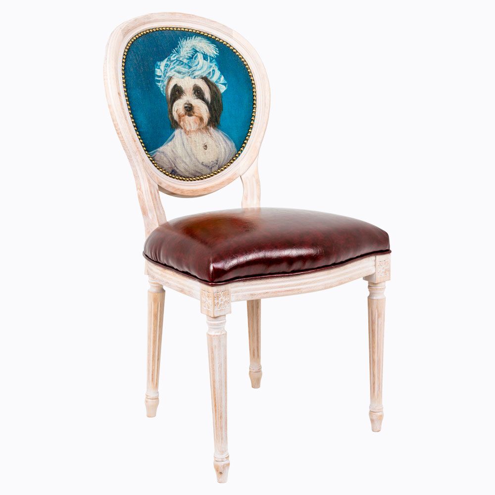 Интригующий дизайн - важный, но не достаточный фактор выбора мебели, обязанной обеспечить нам практичность, прочность и долговечность. Надежные натуральные материалы важны не меньше, чем пленительный дизайн. Корпус стула изготовлен из натурального бука. Среди европейских пород бук чтится самым прочным и долговечным материалом. Обладая широкой, плотной и однородной структурой, он максимально благоприятен для производства мебели и резьбы по дереву. В дизайне "Музейный экспонат" резьба играет ведущую роль: стул украшен вычурными желобками и цветочными узорами, выточенными с ювелирной меткостью. В угоду сегодняшней моде "шебби-шик", благородная фактура натурального дерева акцентирована рукописной искусственной патиной. Приметы старины обладают специфическим обаянием и теплом. Прототипом персонажа "Музейный экспонат" (версия 36) послужил портрет Жанны-Луизы Кампан (1752—1822), — французской писательницы, служившей при дворе королевы Марии-Антуанетты. После основания ею воспитательного заведение для девиц в Сен-Жермене Наполеон назначил её начальницей института для дочерей офицеров Почётного легиона в Экуане. В обширной библиографии Жанны-Луизы выделяются сенсационные «Мемуары частной жизни Марии-Антуанетты» (1823) и «Письма двух молодых подруг» (1811). Её «Газета анекдотов» (1824) и «Неопубликованная переписка королевы Гортензии » (1835) богаты интригующими событиями жизни Наполеона, императора Александра I и других знаменитых людей того времени.
