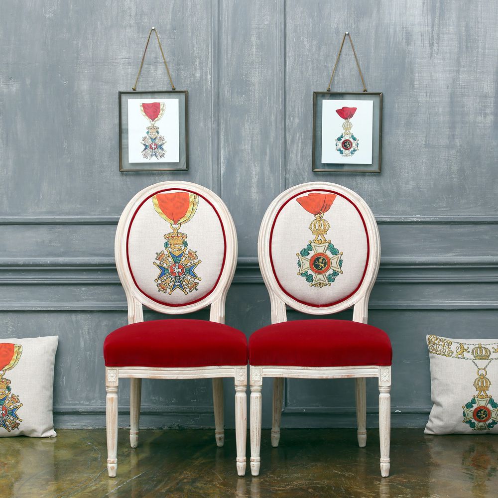 Коллекционную компанию стульям составит галерея декоративных подушек, повторяющих исторический сценарий стульев.