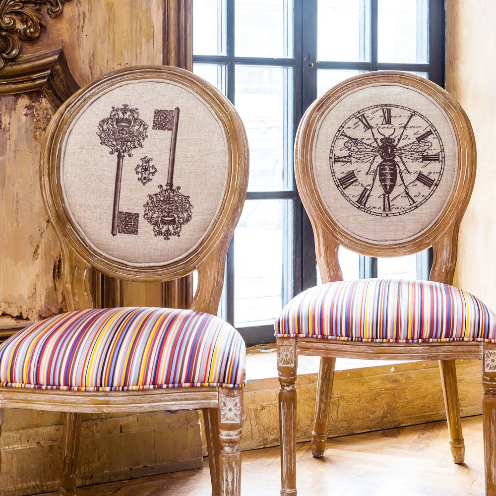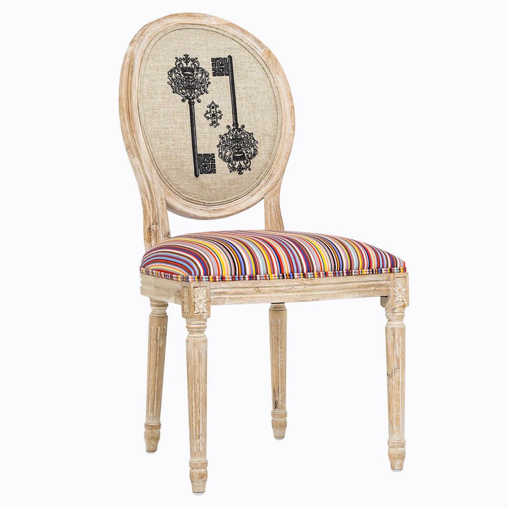 Теплый золотистый оттенок натурального дуба - точная цветовая совместимость с абсолютно любым фоном помещения и большинством интерьерных жанров, от классицизма до "шале". Стулья "Королевство Страйп" - универсальное дизайнерское решение, придающее дому теплое обаяние, не лишенное богемного шарма.