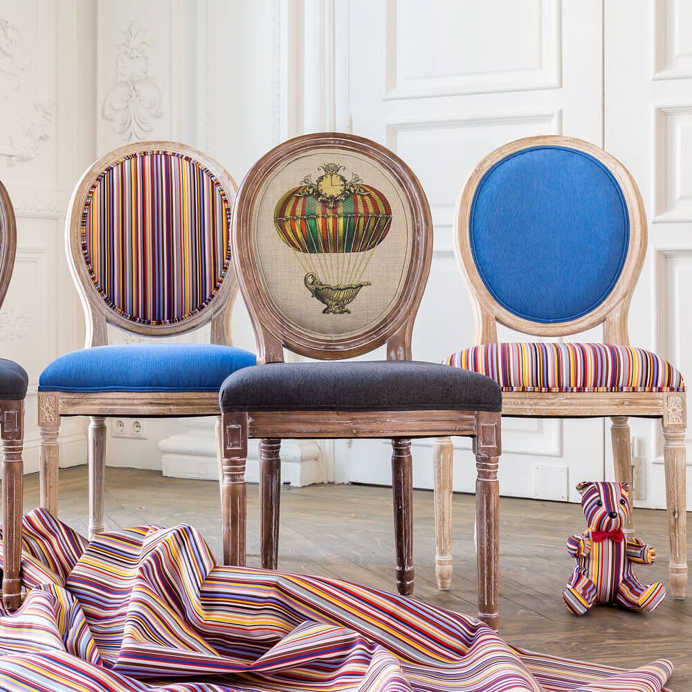 Ткань выкраивается из широкого рулона, поэтому расцветка каждого стула уникальна.