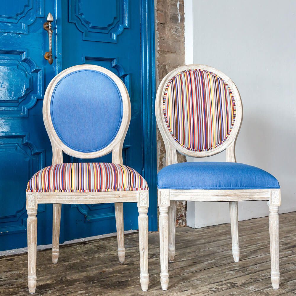 Интерьер отражает стиль жизни владельца. Стулья "Блю Страйп" адресованы тем, кто чувствует стиль, ценит изящность, детали с характером, и не боится экспериментировать. "Блю Страйп" - ярчайший пример дизайнерской мебели, в которой филигранную резьбу королевской школы XVIII века украсила эксцентричная обивка в манере ультрамодного поп-арта.