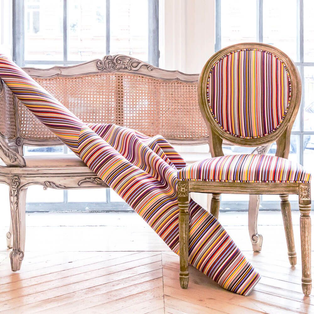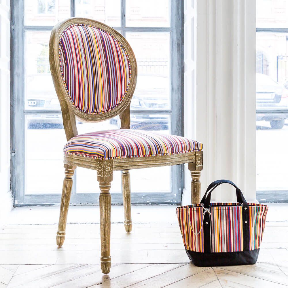 Ткань выкраивается из широкого рулона, поэтому расцветка каждого стула уникальна.