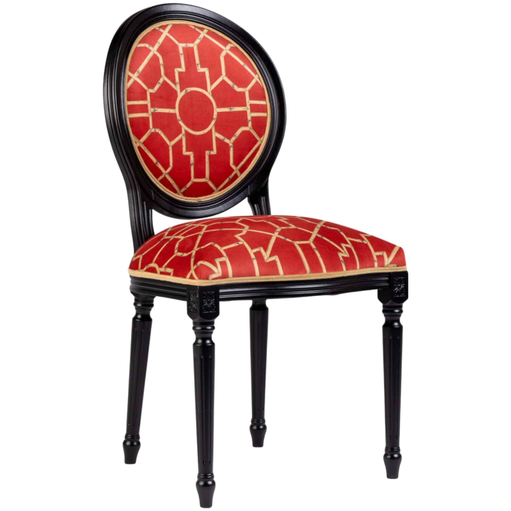 Цвет: Черный каркас, мультиколор обивки (алый с золотым геометрическим узором, горчичный кант).