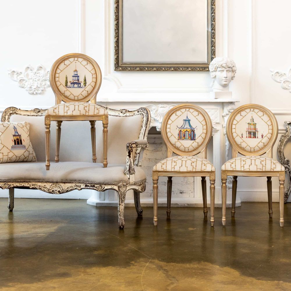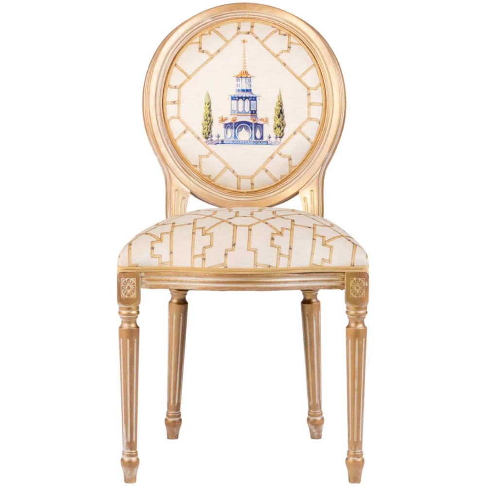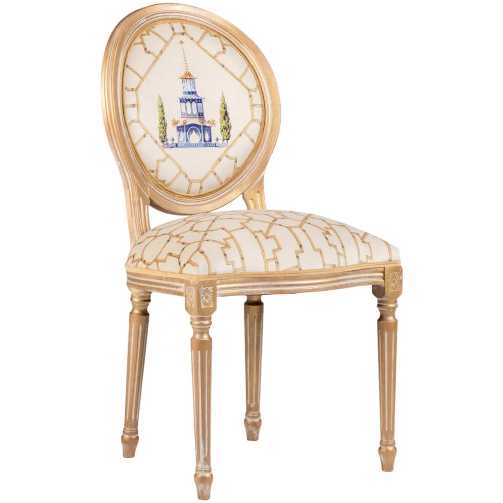 Стул «Мечты о Поднебесной» — это не просто место для сидения, а портал в мир восточной философии и эстетики. Он мастерски сочетает глубину китайских мотивов с изысканностью французского дизайна, характерного для эпохи Луи-Филиппа. Сюжетная роспись на спинке, изображающая двухэтажную пагоду в бамбуковом обрамлении, — это больше, чем декор. Пагода, чьи изогнутые крыши напоминают о движении драконов, символизирует духовное развитие и связь неба с землей. Этот стул создан для тех, кто ценит в интерьере не только функциональность, но и историю, символизм и безупречную элегантность.
