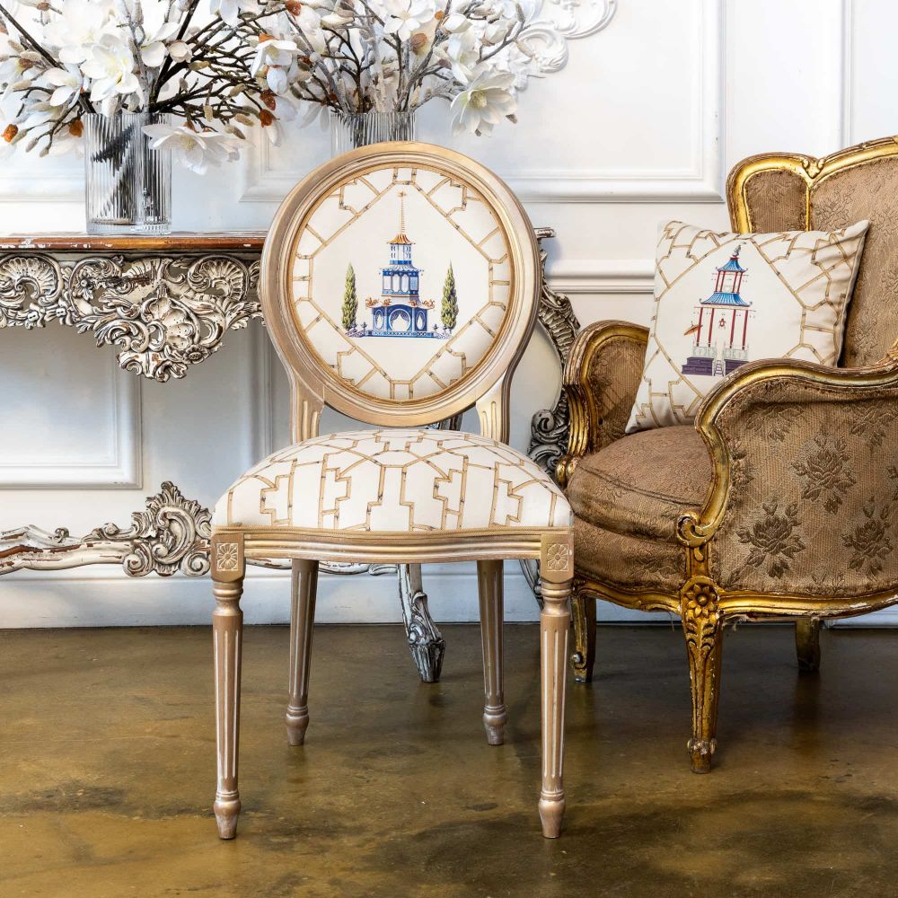 Уникальное торговое предложение: Это авторский стул-медальон, где классическая французская форма служит изящной рамой для аутентичного художественного повествования о Китае. Вы приобретаете готовый коллекционный предмет, который мгновенно создает в помещении атмосферу утонченности и культурной глубины, подчеркивая индивидуальность владельца.