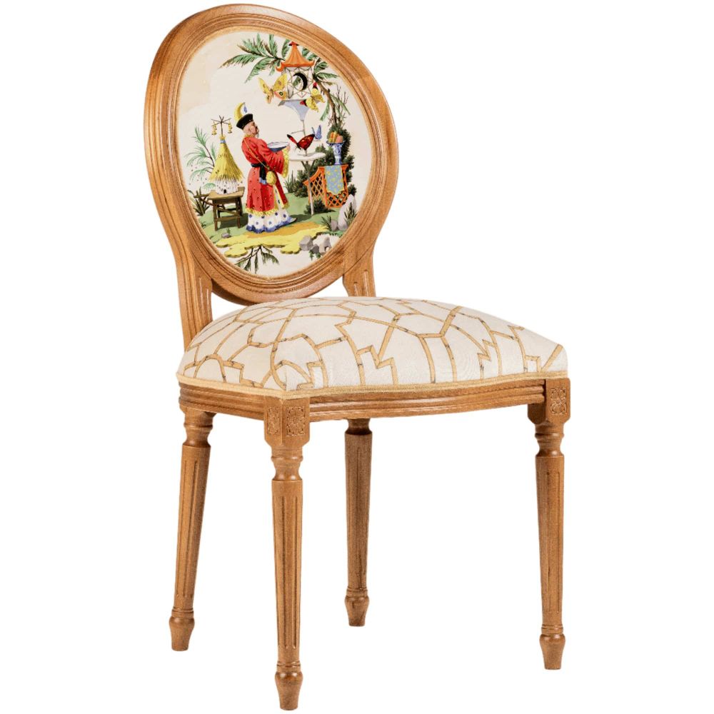 Он не просто стоит в комнате. Он будто замер на мгновение, чтобы подарить вам улыбку. Стул «Мечты о Поднебесной», версия 12 — это полет воображения, застывший в дереве и ткани. Изящный корпус, плавные линии которого вторит изгибам крыш китайских беседок, становится фоном для настоящего калейдоскопа красок. На спинке стула, словно в драгоценном медальоне, трепещут яркие бабочки — символ радости, возрождения и безмятежной жизни в восточной культуре. Этот предмет — не просто место для сидения, а готовая художественная композиция, которая приносит в дом ощущение вечной весны, лёгкости и очарования стиля шинуазри.