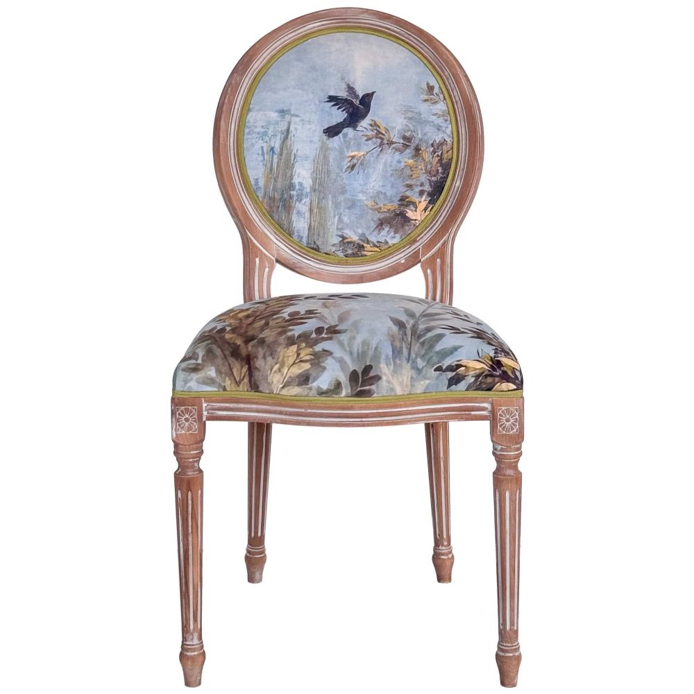 Силуэт: Овальная спинка в форме медальона — классический французский мотив, родоначальником которого считается эпоха Луи-Филиппа. Этот изящный силуэт придает стулу утонченность и графичность.