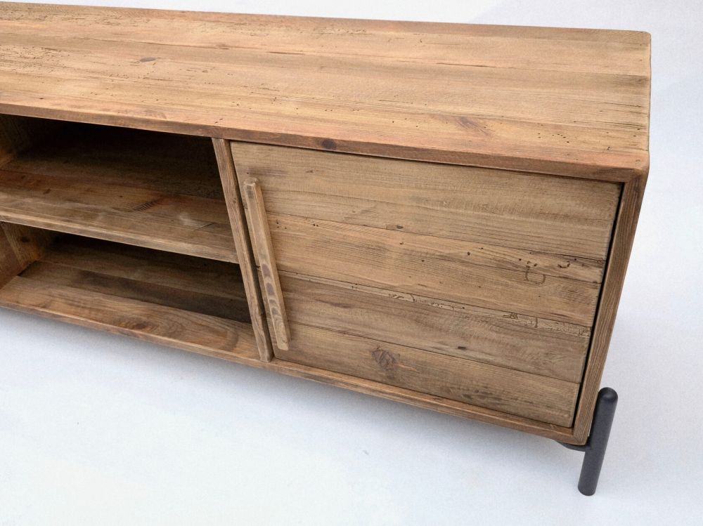 Комод создан из регенерированной древесины – досок, которым до 300 лет. Это разобранные корабли, старые амбары, дома, хранящие память о веках. Тщательно обработанные, они получили вторую жизнь в этом предмете. Естественные сучки, трещины, неровности, потертости – не дефекты, а главная ценность, подлинность. На некоторых досках можно увидеть исторические клейма, например, Вест-Индской компании. Цвет натурального дуба, фактурная винтажная доска создают ощущение тепла и уюта.