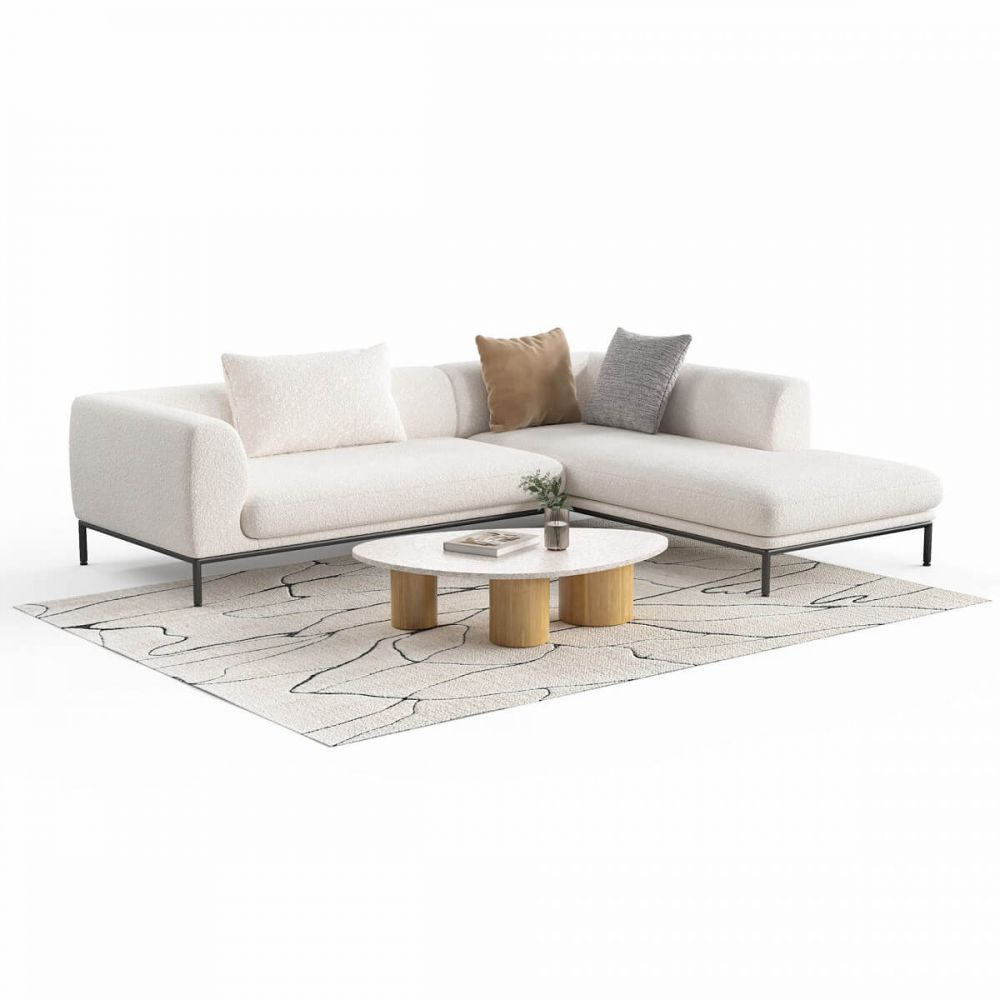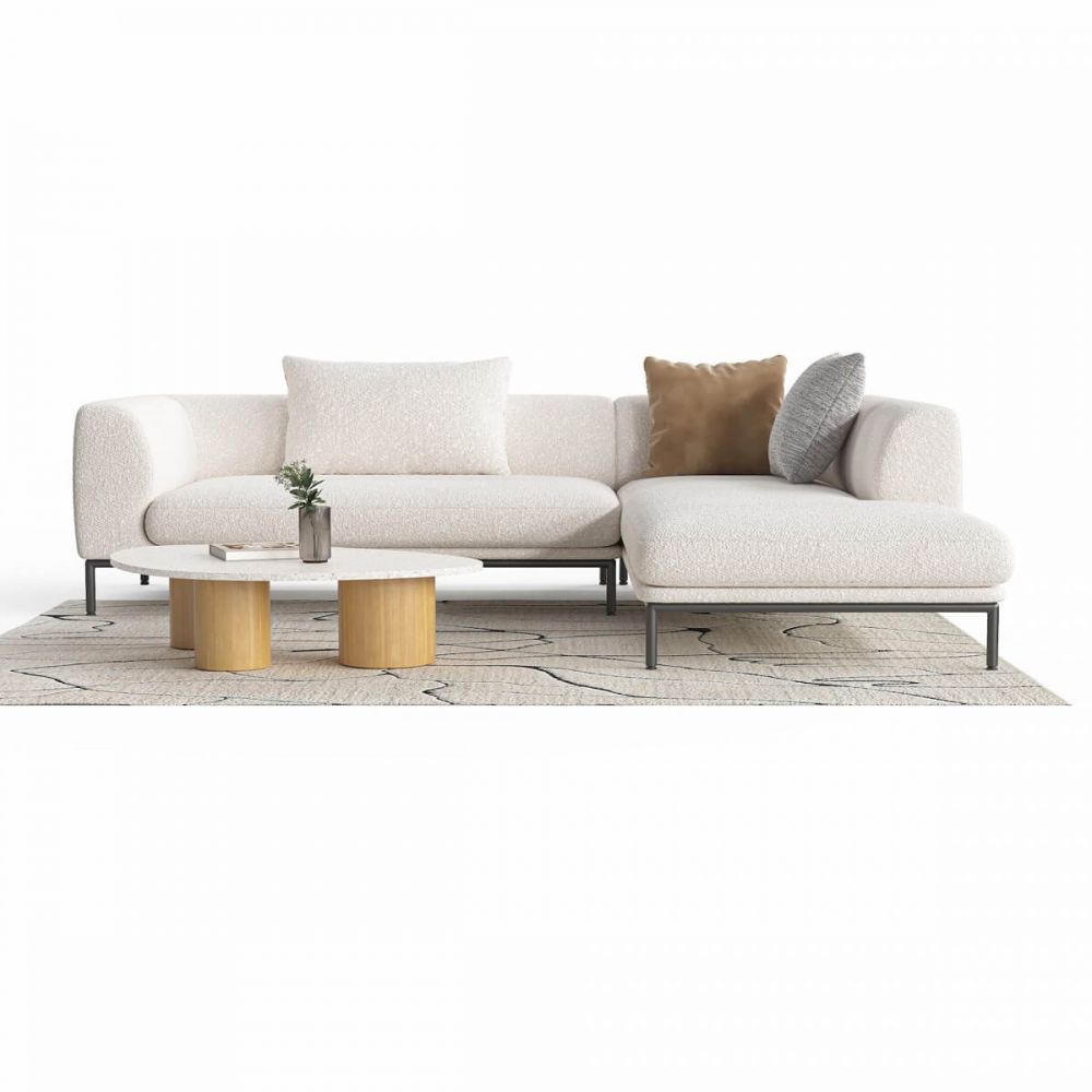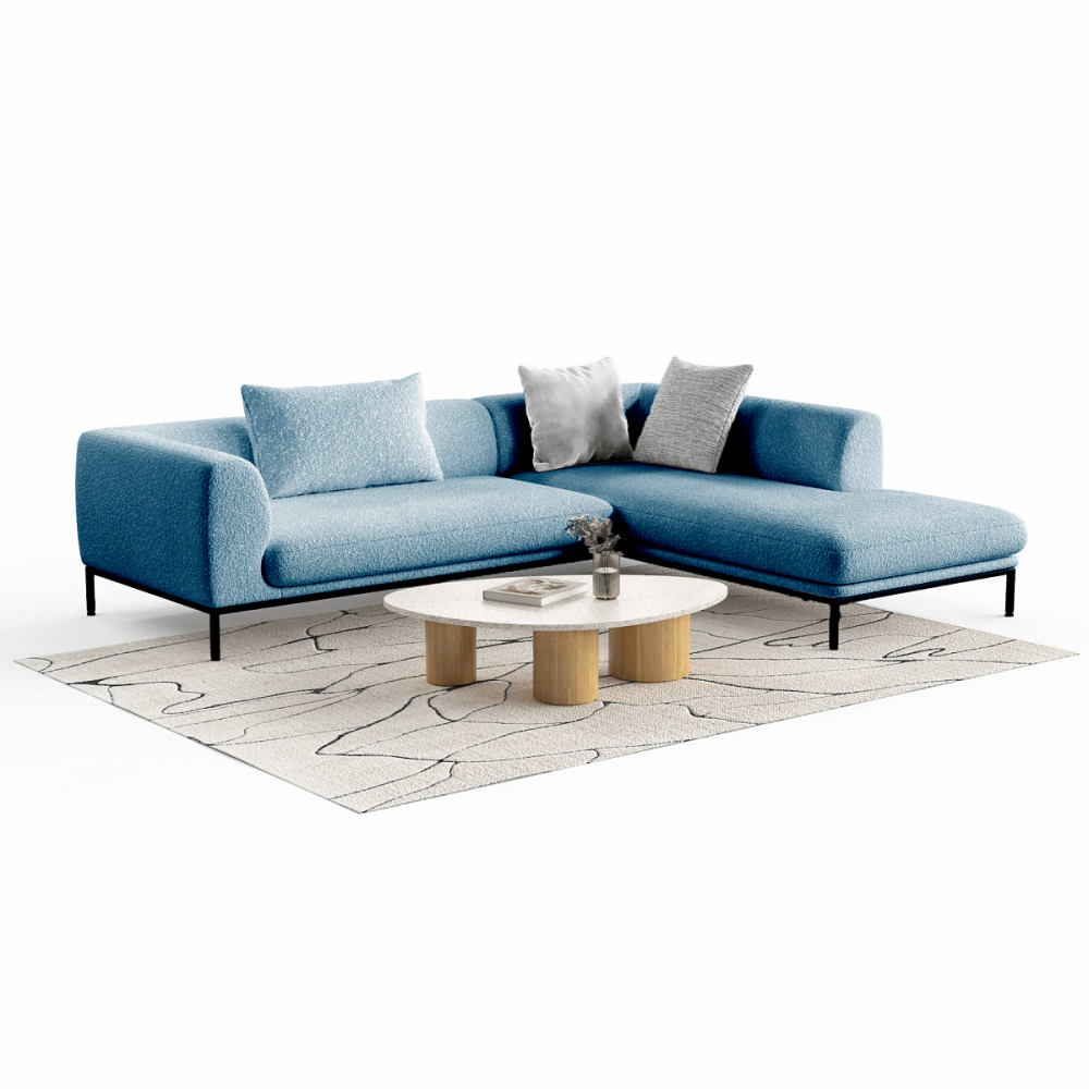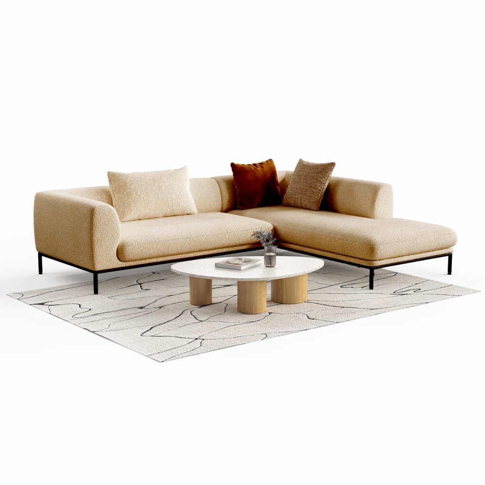 Берёзовая фанера вместо ДСП. ППУ, который не проседает. Высокие металлические опоры — не пластик. Ткань букле в трендовых оттенках. Угловая конфигурация для больших гостиных. Доставка по всей России.