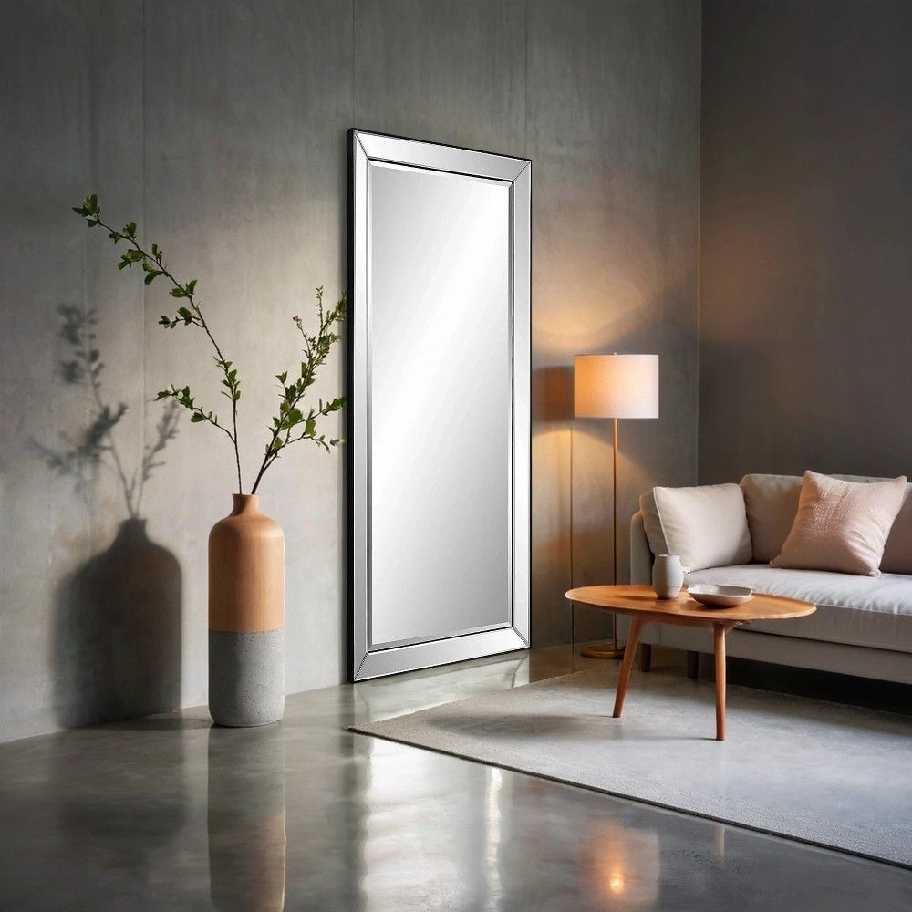Двухуровневый фацет: 20 мм (центр) + 10 мм (рама). Фацет — это снятая под углом кромка зеркала, которая создает эффект преломления света. Двойная огранка придает зеркалу объем и глубину, делая его визуально более дорогим и статусным. На зеркале высотой 190 см этот эффект максимален: фацет работает как архитектурная подсветка, оживляя поверхность.