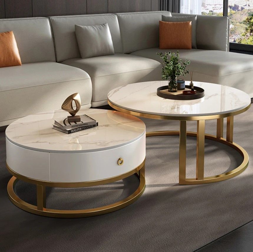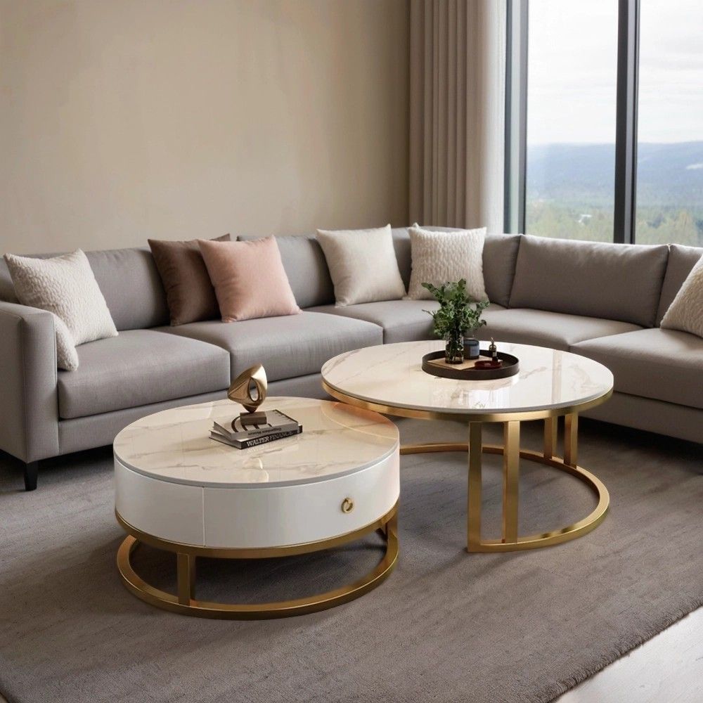 Мечтаете о стильном и невероятно функциональном решении для современной гостиной или спальни? Комплект столиков WALTER FINAN — это больше, чем просто мебель. Это продуманная система, где два столика, объединенные общей эстетикой, предлагают вам свободу выбора. Используйте их вместе, создавая многоуровневую композицию, или по отдельности — в разных уголках комнаты. Идеальная гармония белоснежного мрамора и роскошного золота в каркасе создает яркий акцент, который преобразит любое пространство.