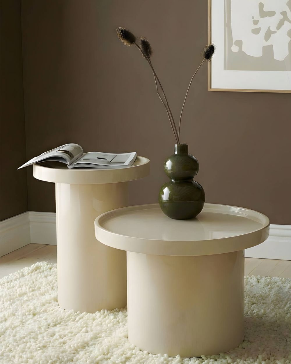 Глянцевое белое эмалевое покрытие не только выглядит стильно и современно, но и отражает свет, визуально расширяя пространство и добавляя ему легкости. Столик становится практически невесомым, не перегружая интерьер, но при этом выполняя все свои функции. Лаконичный дизайн позволяет ему органично вписаться в любой стиль – от минимализма до скандинавского или современной классики.