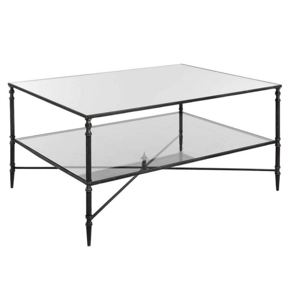 Особенности: две стеклянные поверхности создают удивительный эффект многослойности – столик выглядит объемным и интересным с любой точки обзора, а черный каркас добавляет графичности.